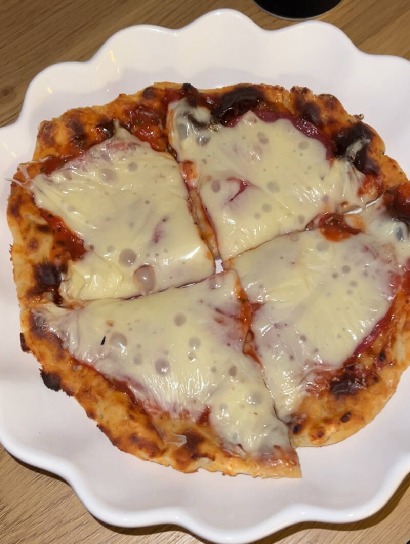 Sätt ugnen på 250 grader, blanda ihop grekisk yoghurt, vetemjöl, salt och oregano till en deg, den kommer vara något kladdig. Platta ut på en plåt med bakplåtspapper till önskad tjocklek. Använd en blöt sked så fastnar det mindre. Förgrädda i 10 minuter, ta ut och lägg på toppings, grädda i 10 minuter till.