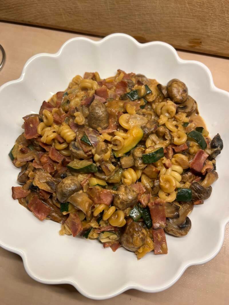 Krämig svamppasta med bacon, zucchini & vitlök🍄🟫