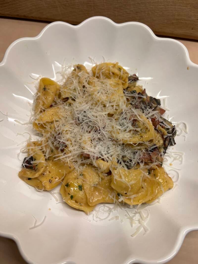 Krämig tortellini med bacon, vitlök & tryffel🥓🧄