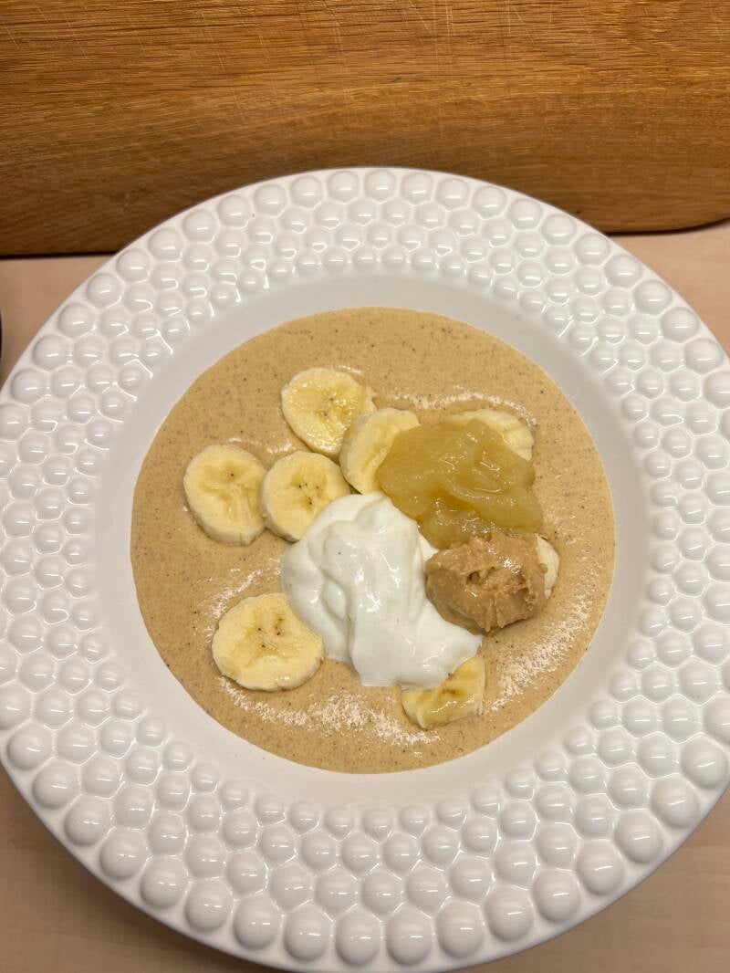Häll upp milkshaken i en bunke, vispa ner mannagrynen, salt, kanel och kardemumma. Mikra i 1-2 minuter i taget, ta ut och vispa mellan gångerna. Upprepa tills gröten har fått en fast konsistens, häll upp i en skål och toppa med det du gillar!
