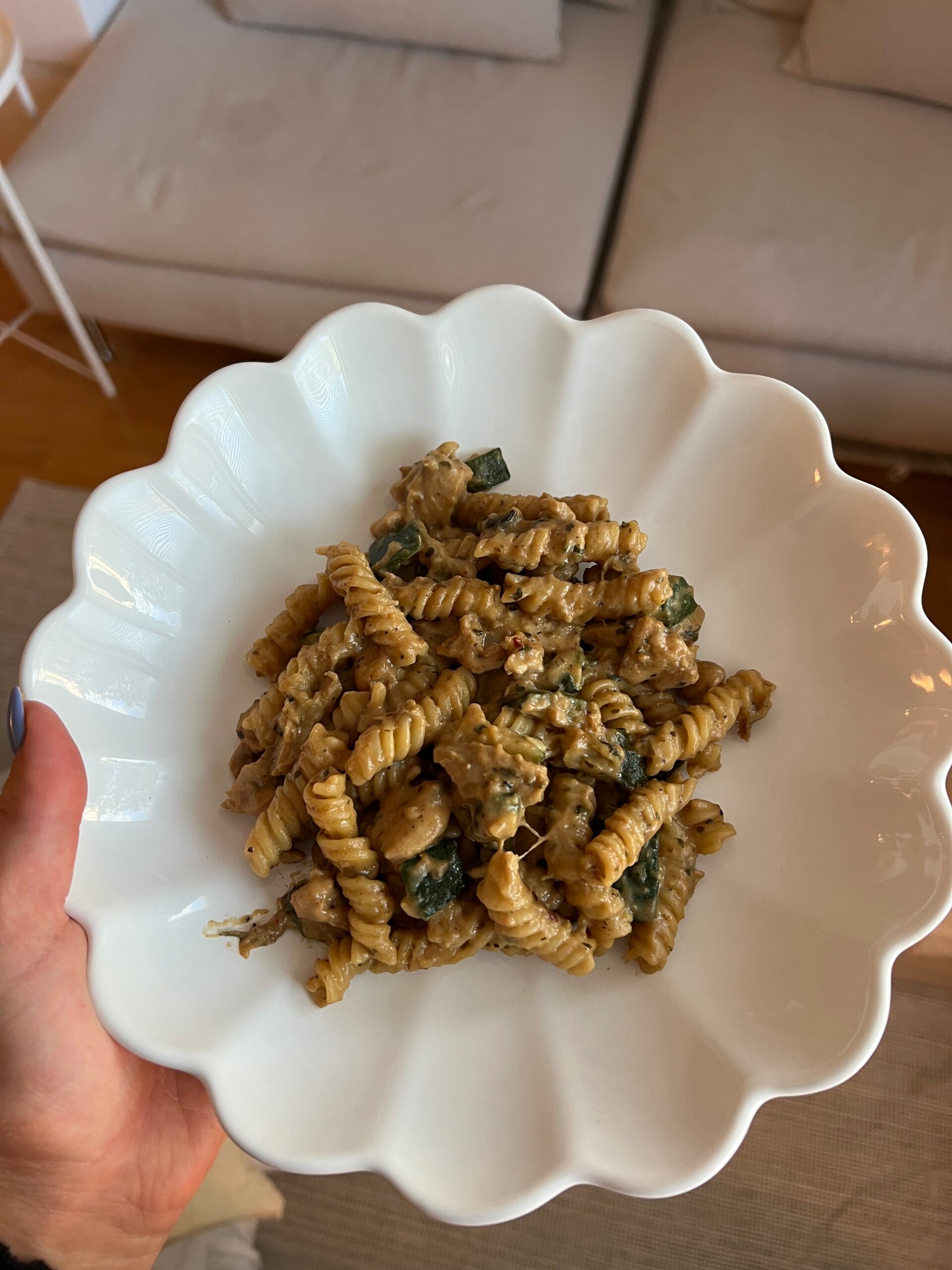 Krämig pasta med kyckling, ost och zucchini🥒