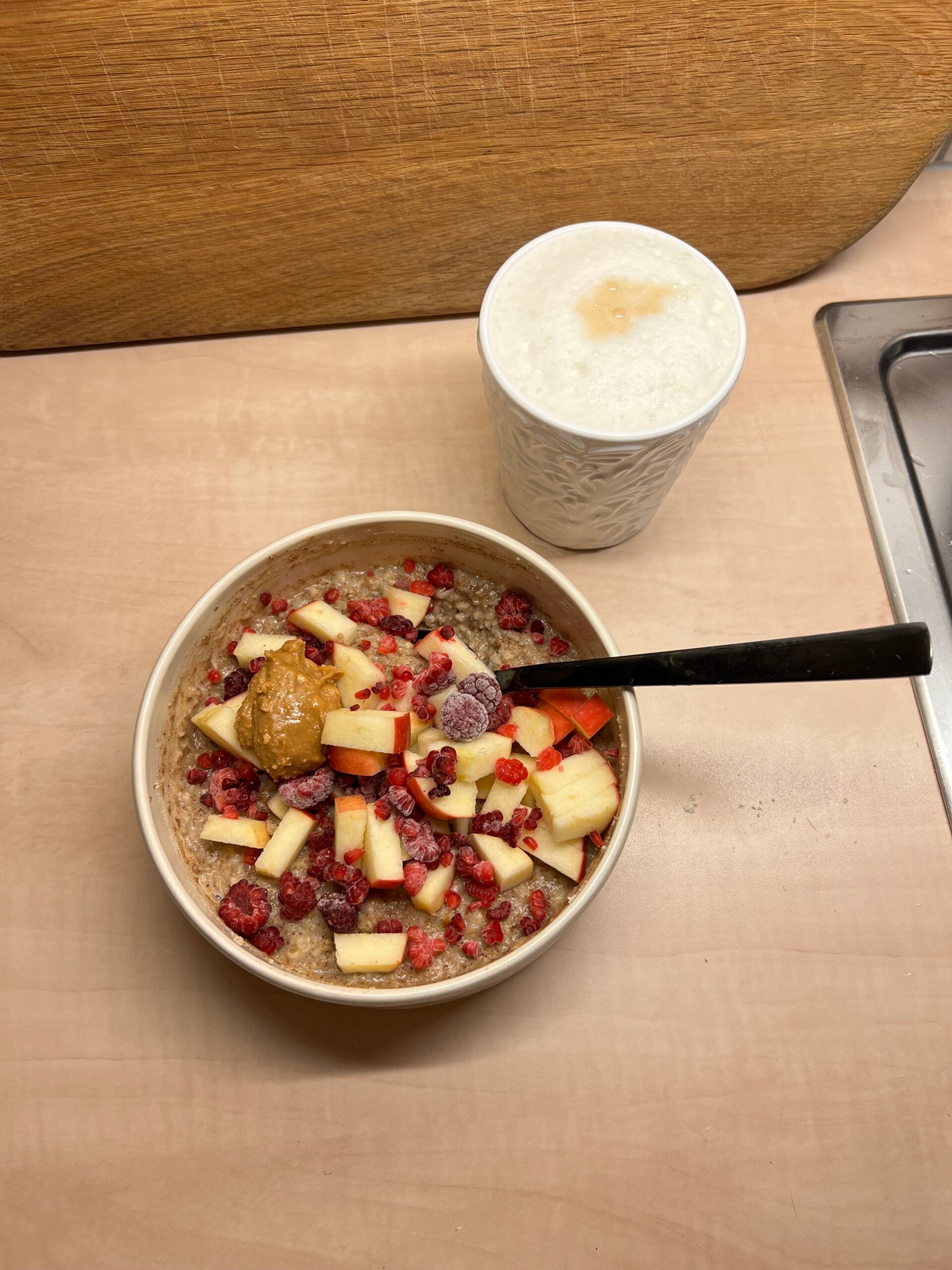 Blanda havregryn, vatten och salt, mikra i 3-4 minuter. Låt svalna något och rör sedan ner proteinpulver, kanel och kardemumma. Både vassle och kasein funkar, vattenmängden kan behöva justeras beroende på vad man använder. Vaniljsmak eller chokladsmak tycker jag passar bäst! Toppa med exempelvis frukt, bär, honung och jordnötssmör.