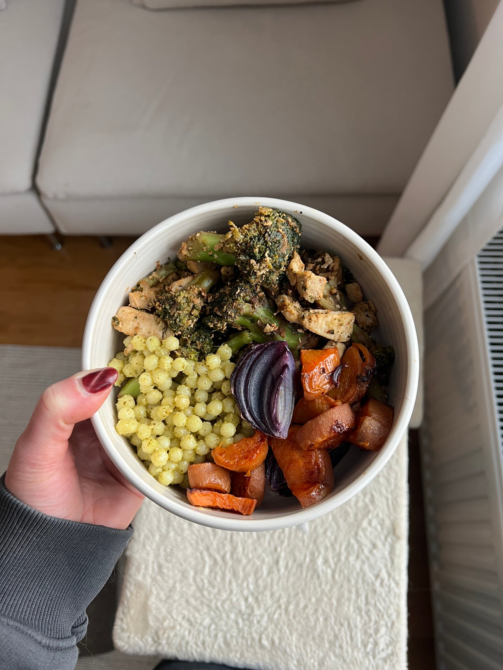 Stek kyckling med valfria kryddor och vitlök, lägg åt sidan. Stek broccoli med soja och vitlök, blanda sedan kycklingen med broccolin.